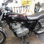 今日の1人目のお客様は、一家でSRを4台所有のS様がバイクの引取でご来店。お預かりの間に、ブレーキ廻り・ボアエースの車高アップキットの取付・オイル交換!!
