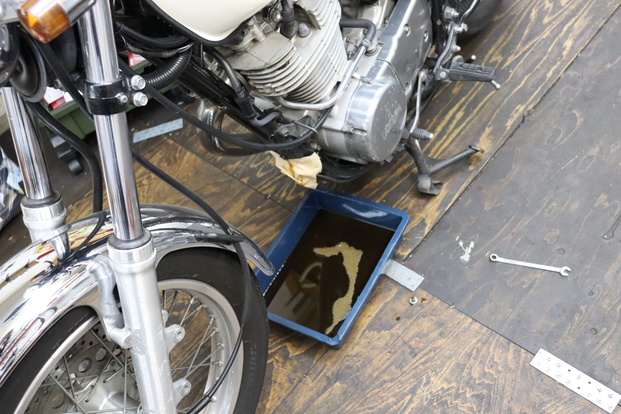 今日も朝からレンタルバイクの処理して 火曜日の検査用の書類作って レンタルバイクのSRのオイル交換とかの整備して