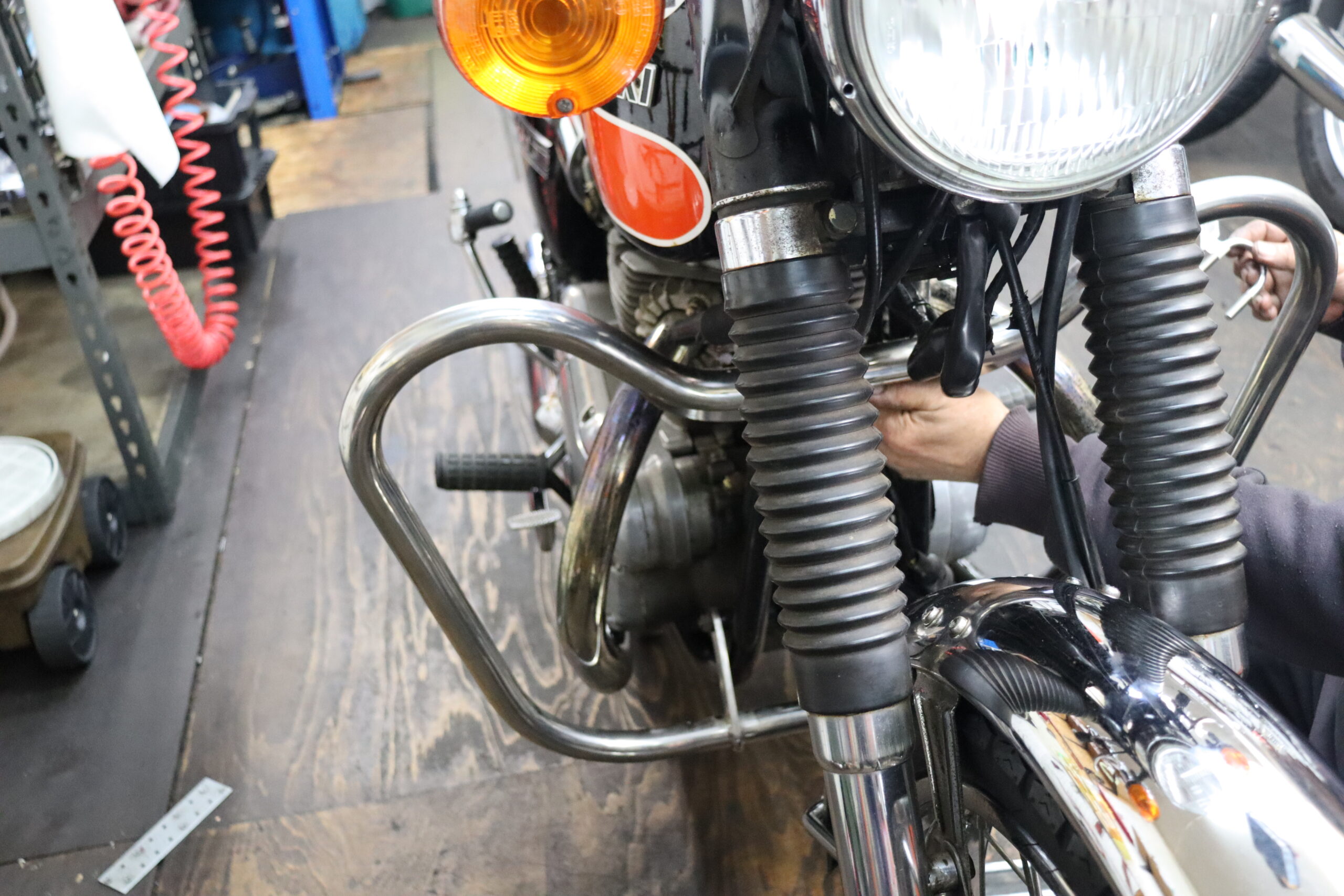 最後にエンジンガード! ふるいバイクには、この手のでかいの似合いますね! これぞ!って感じ タイからのお客様が来れました 毎年恒例ですけどね 笑 いつも明るいご夫婦 またしても、大量購入! また来年!