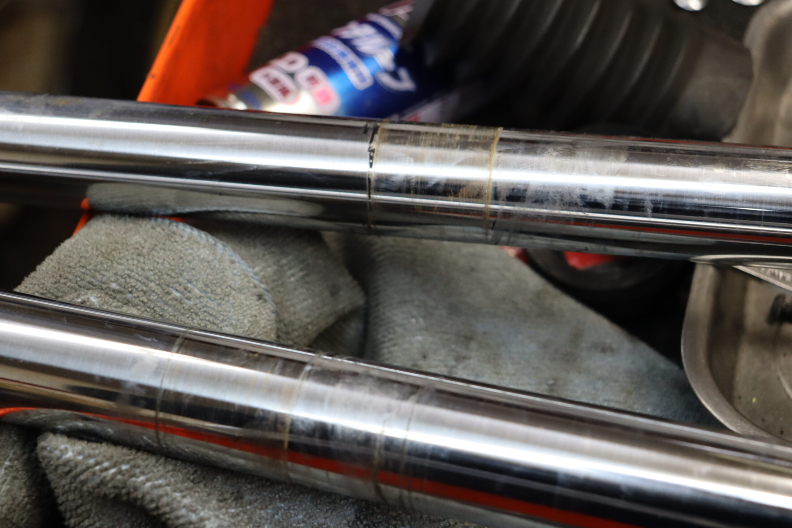 フロントフォークは、外したついでに嫌いに磨いておきました