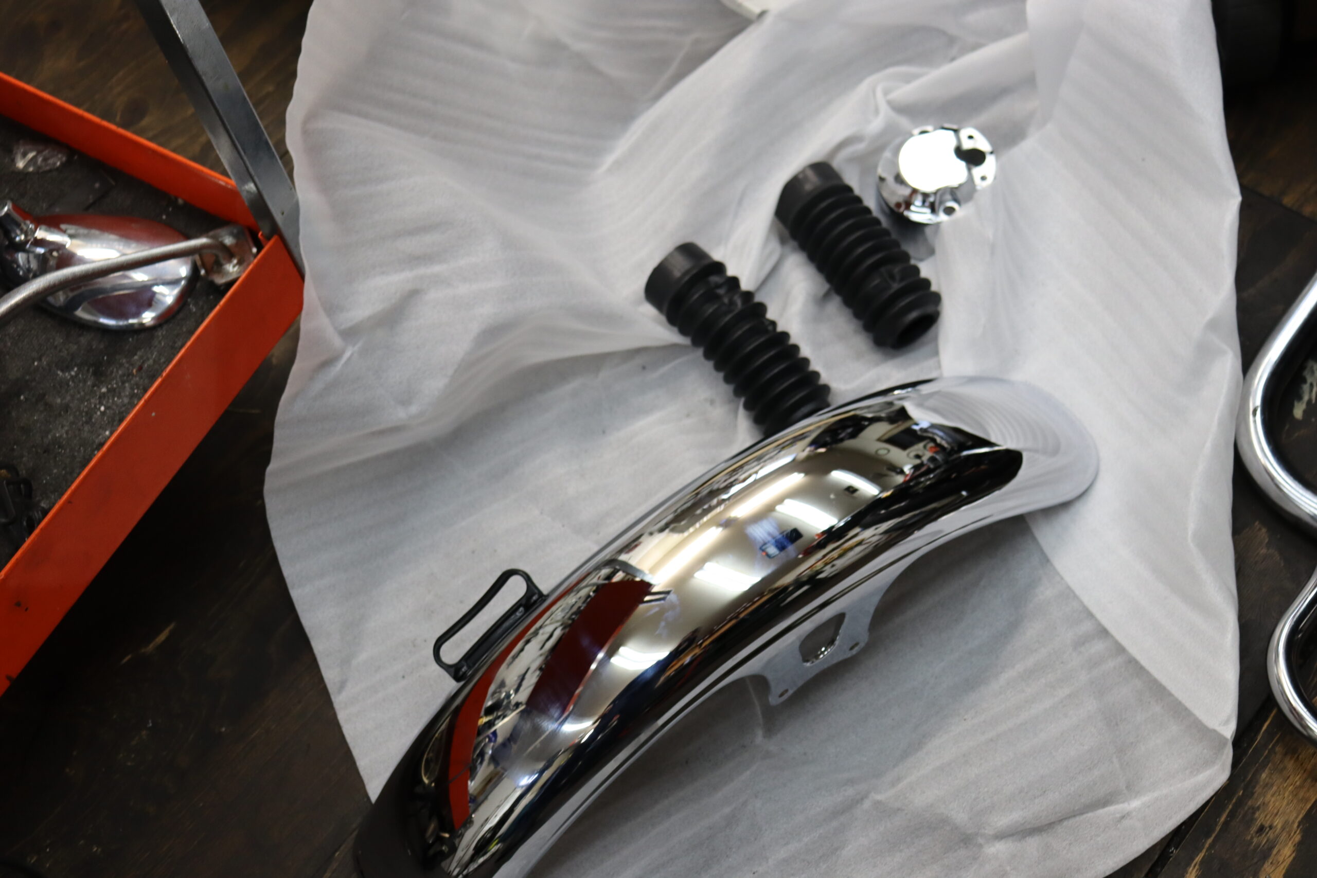 フロントフェンダーとブーツとメーターカバーの交換