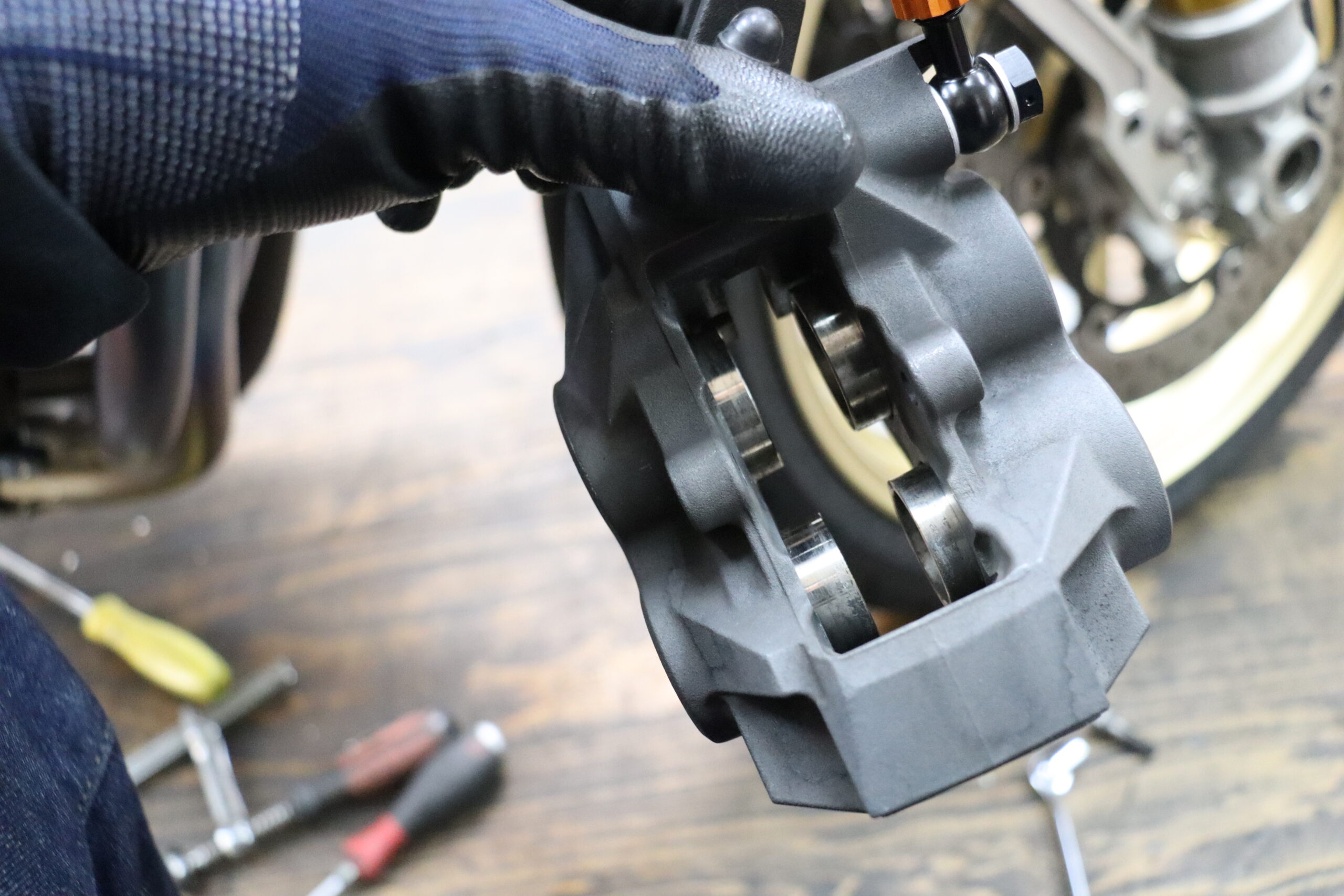 キャリパーのピストンも、磨いております