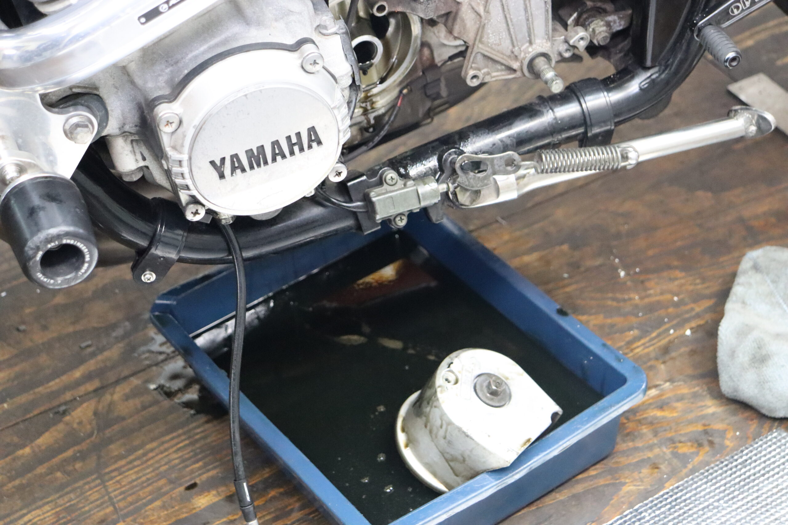 そのおかげで、フロントスプロケット周りの清掃とチェーンルーブ塗りやすくなりますね