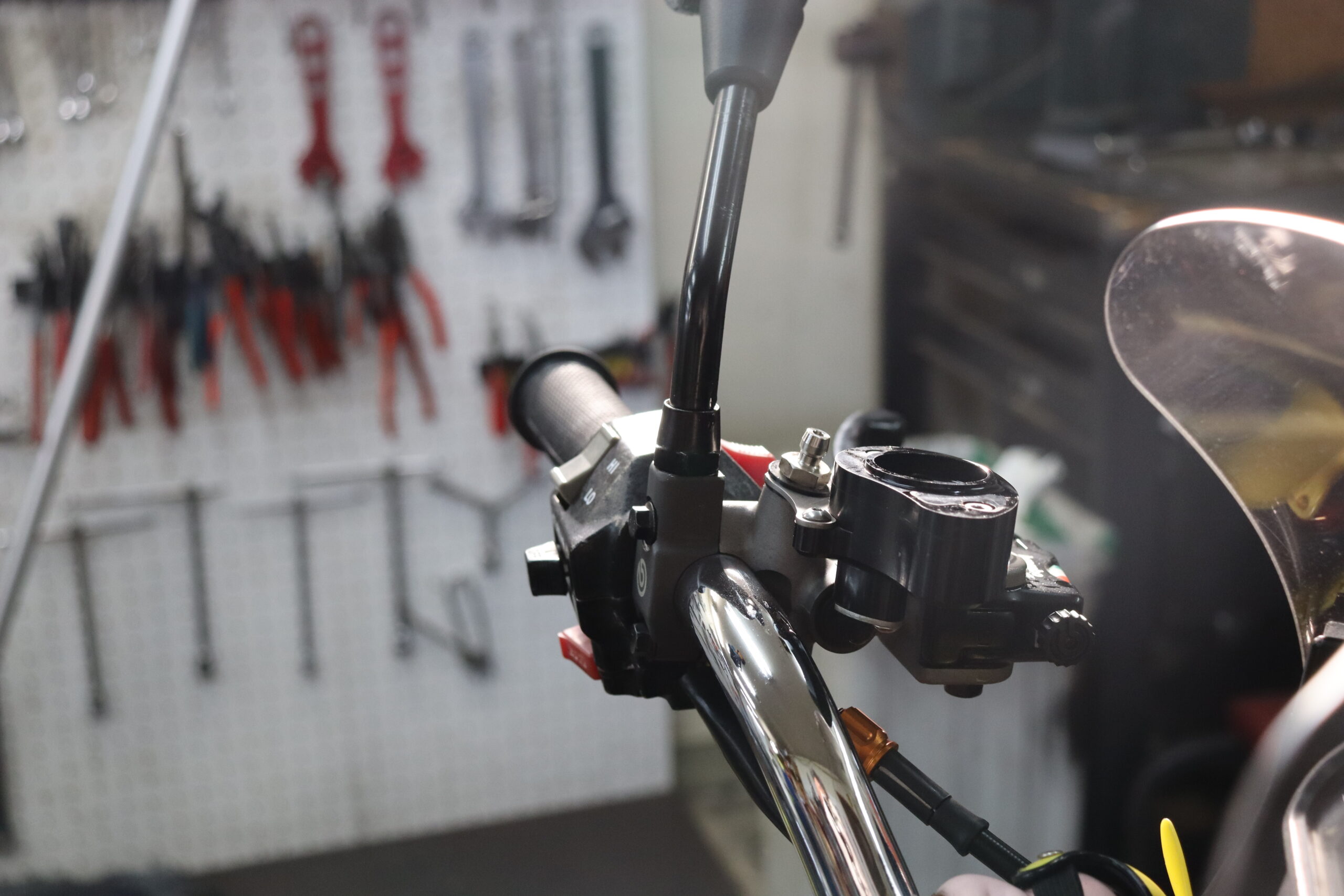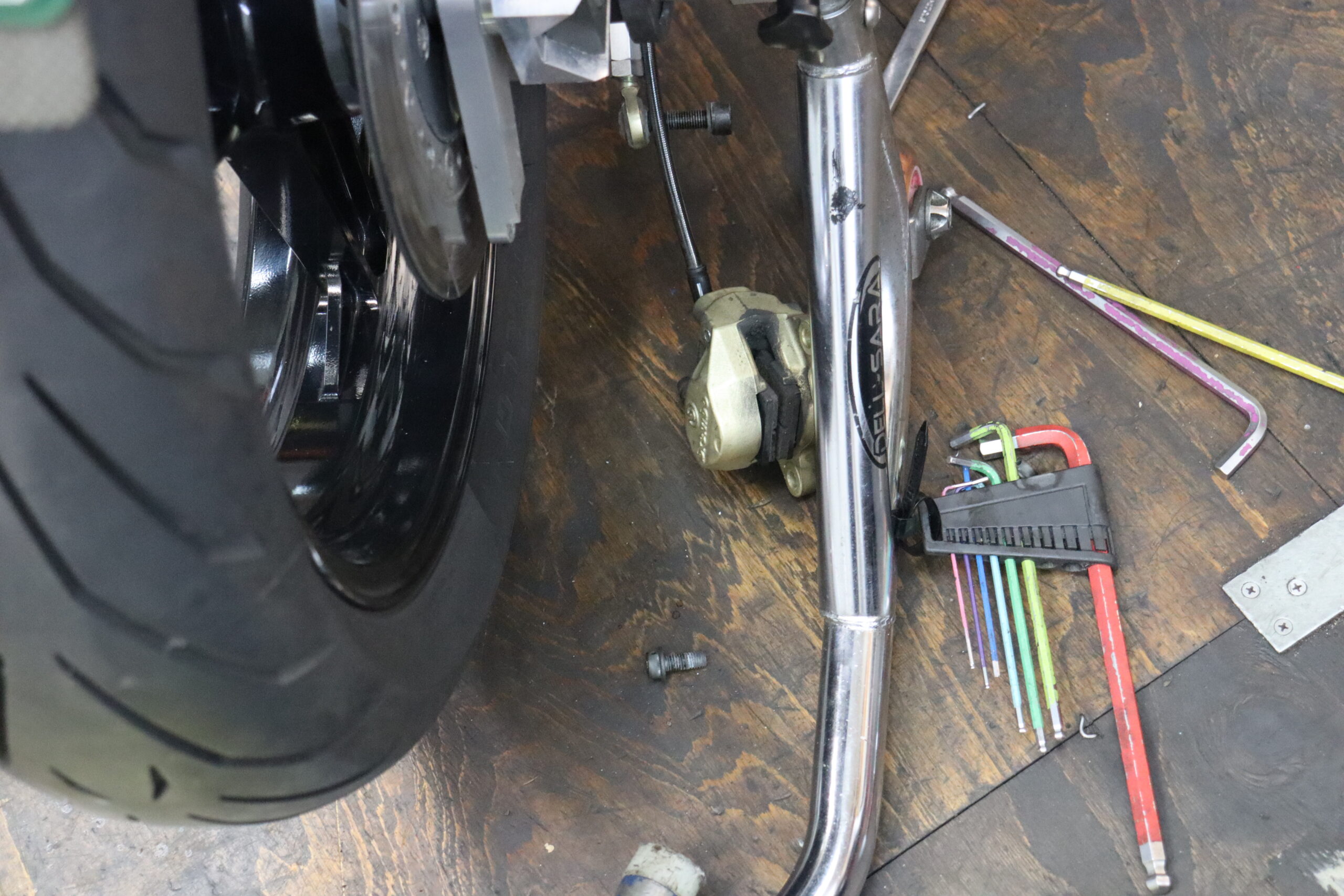 ブレーキとクラッチのフルード交換とパット点検削り アタリ面を綺麗に削って取付 完了です ツーリング後に、また預からないとですね あれの修理で