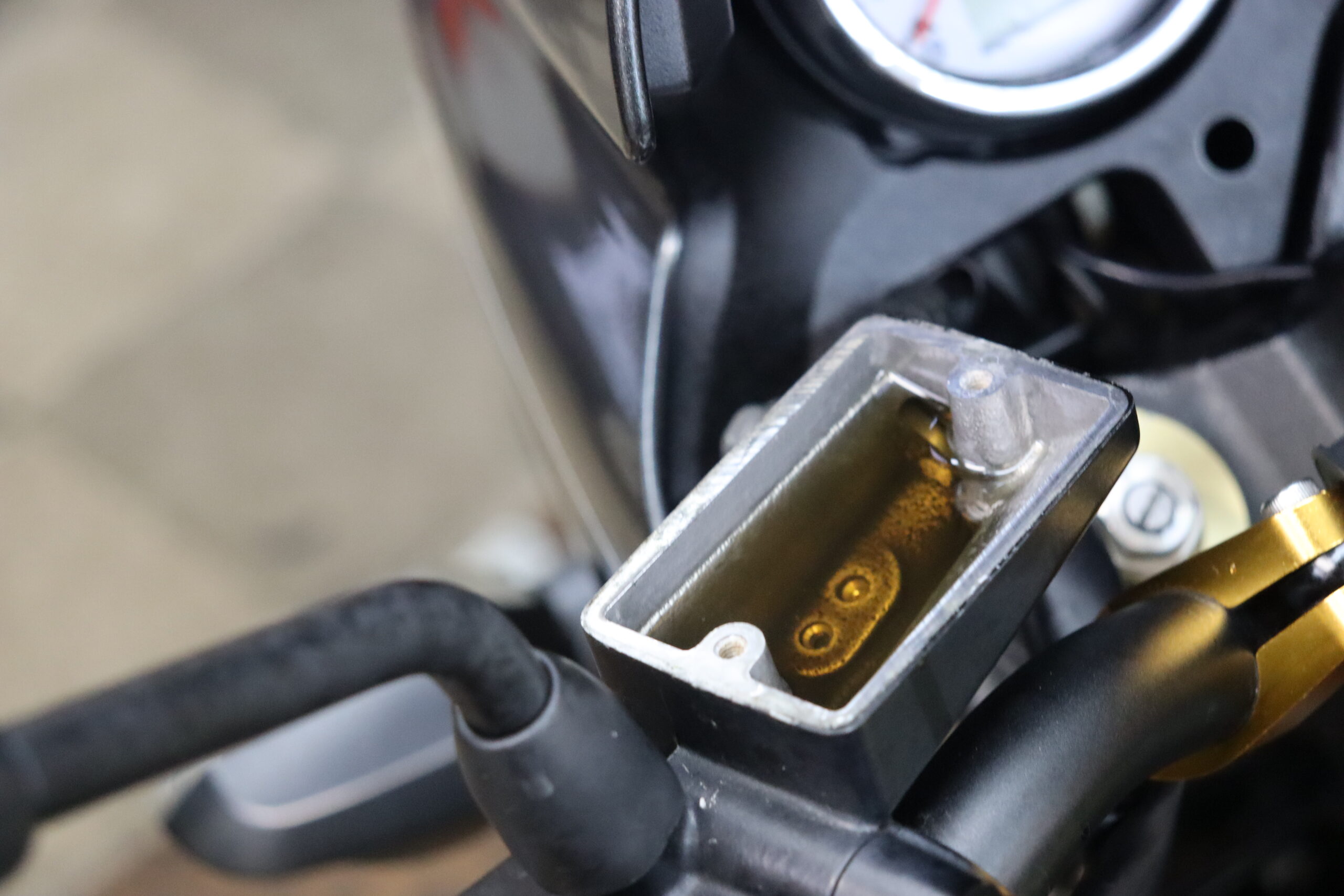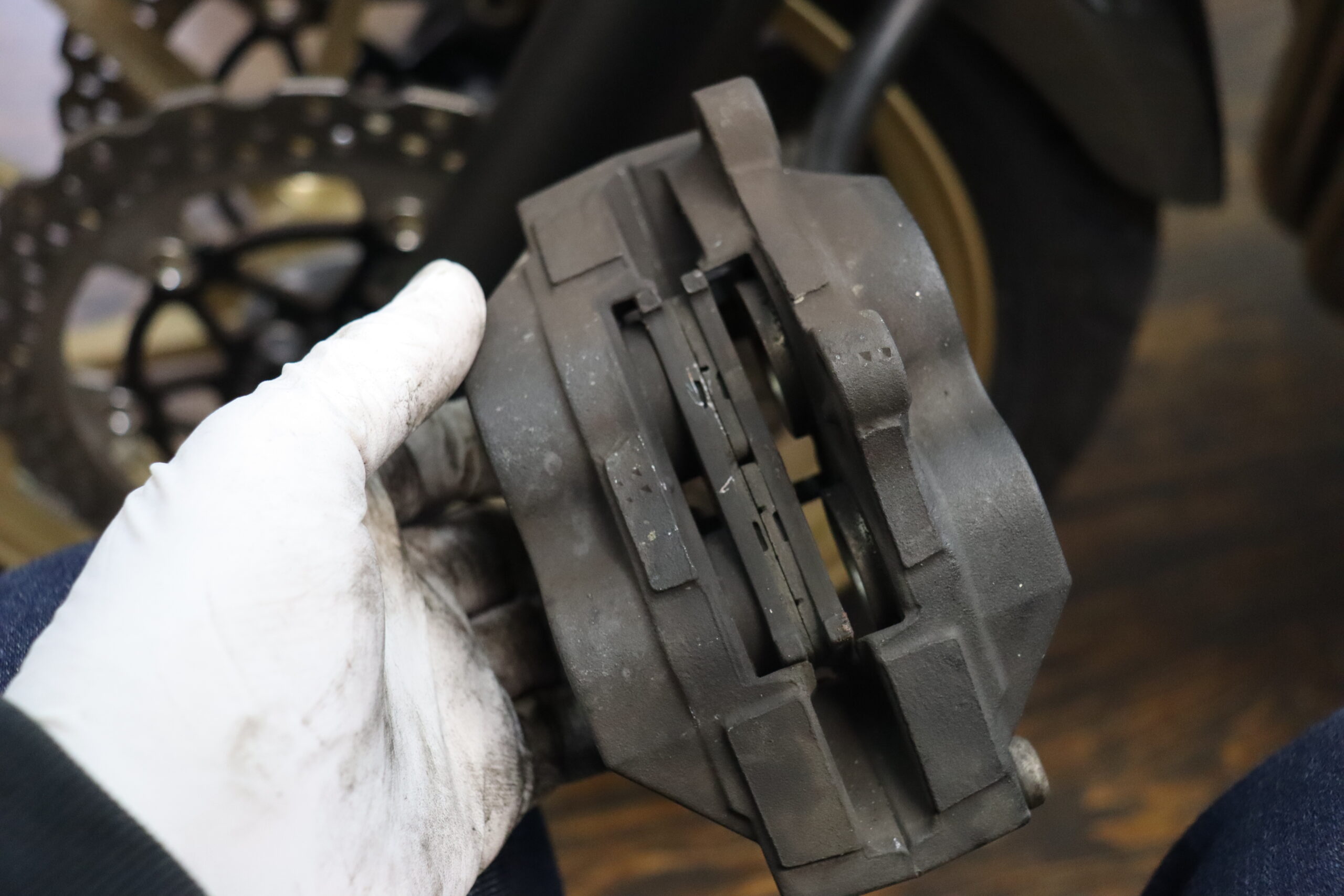だいたいこんな感じで真っ黒・・・ ピストンも回しながらパットカスを取っていきます ここまでやって完了です