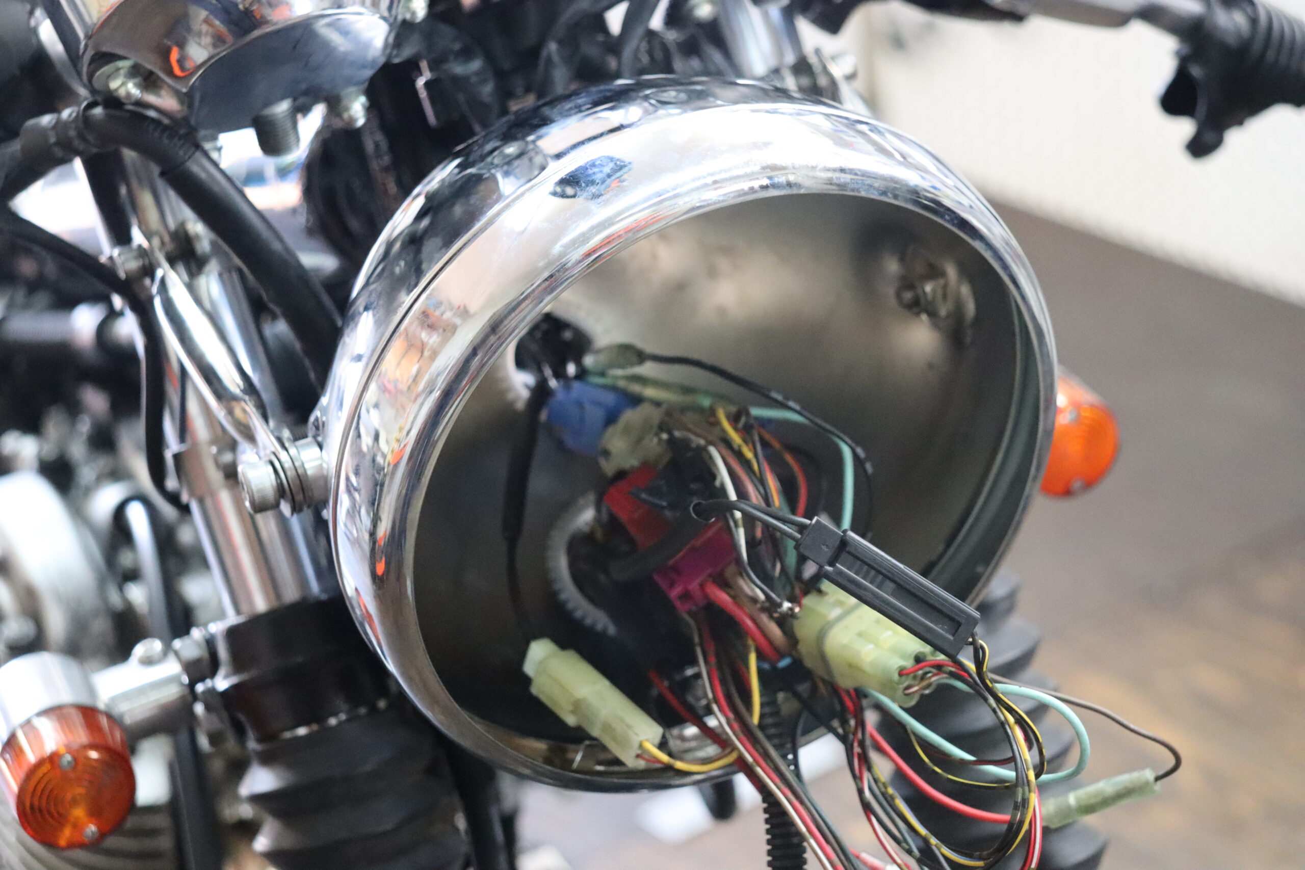 配線を色々と処理しながら、ライトの中に収めていきます