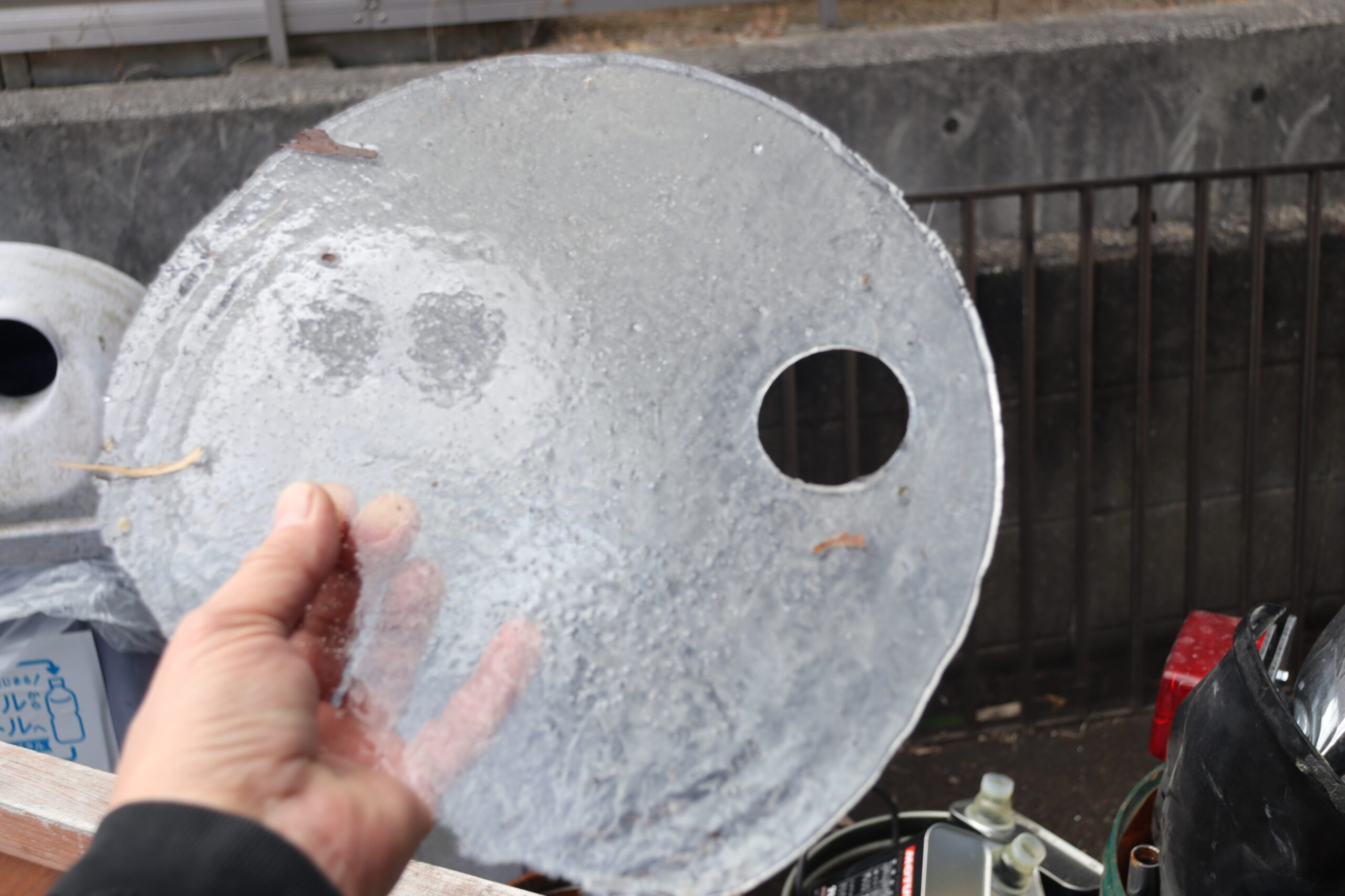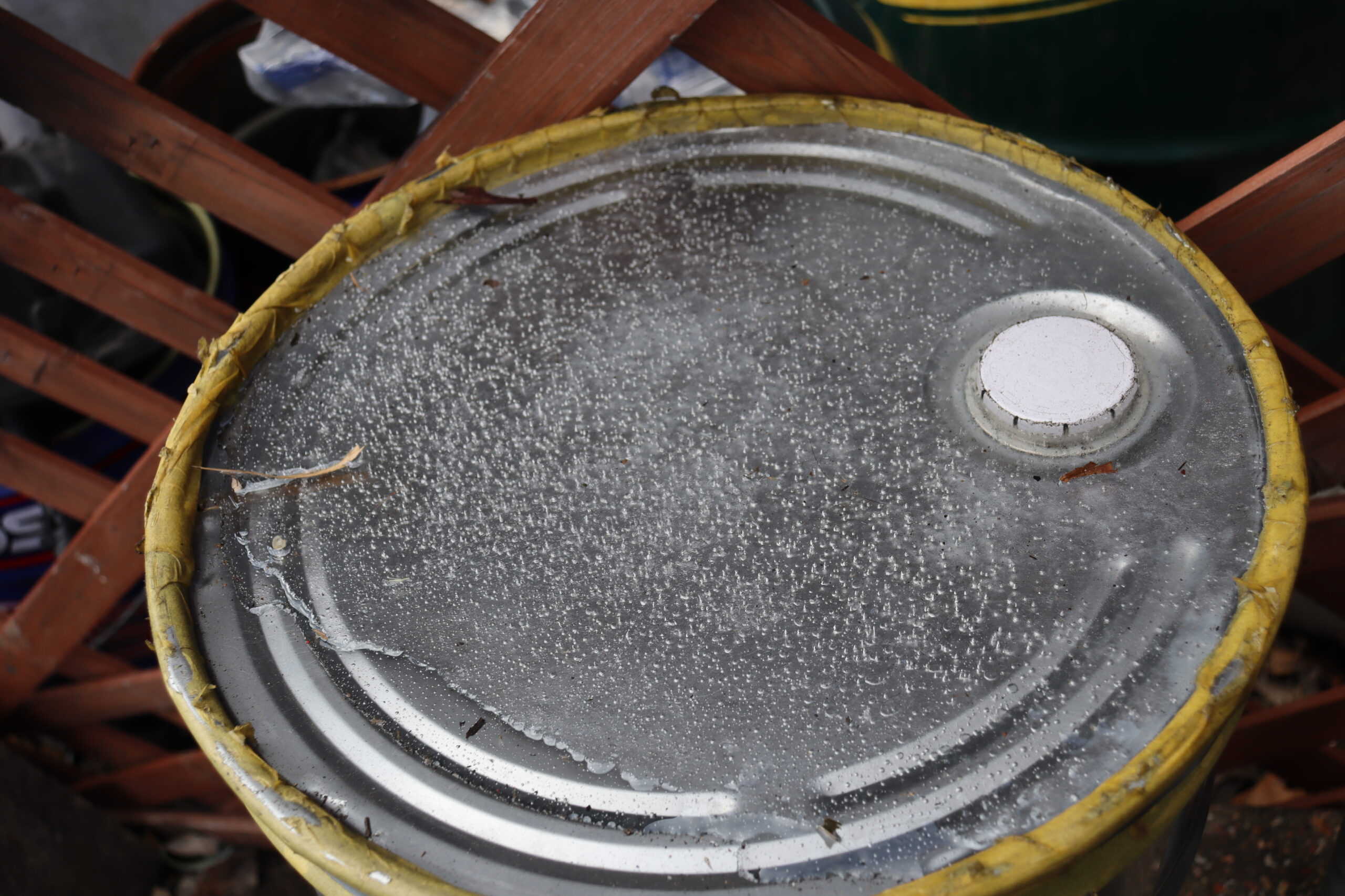外に置いていたオイル缶の上に
