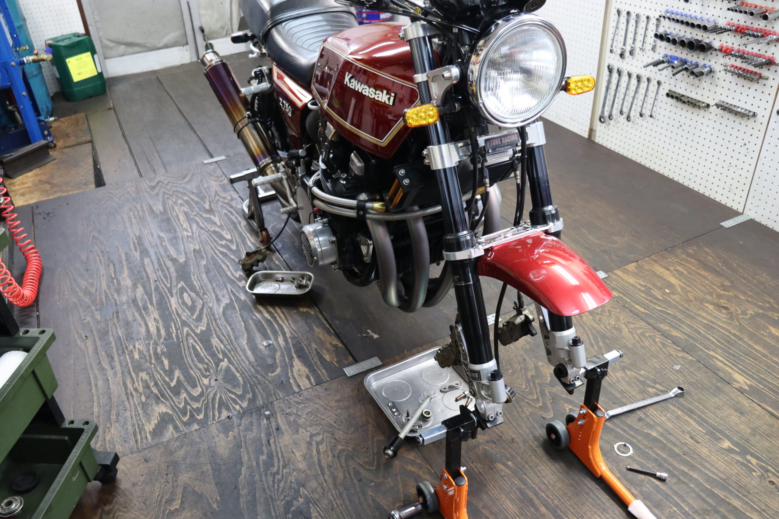 タイヤ交換とオイル交換ブレーキ周り点検など