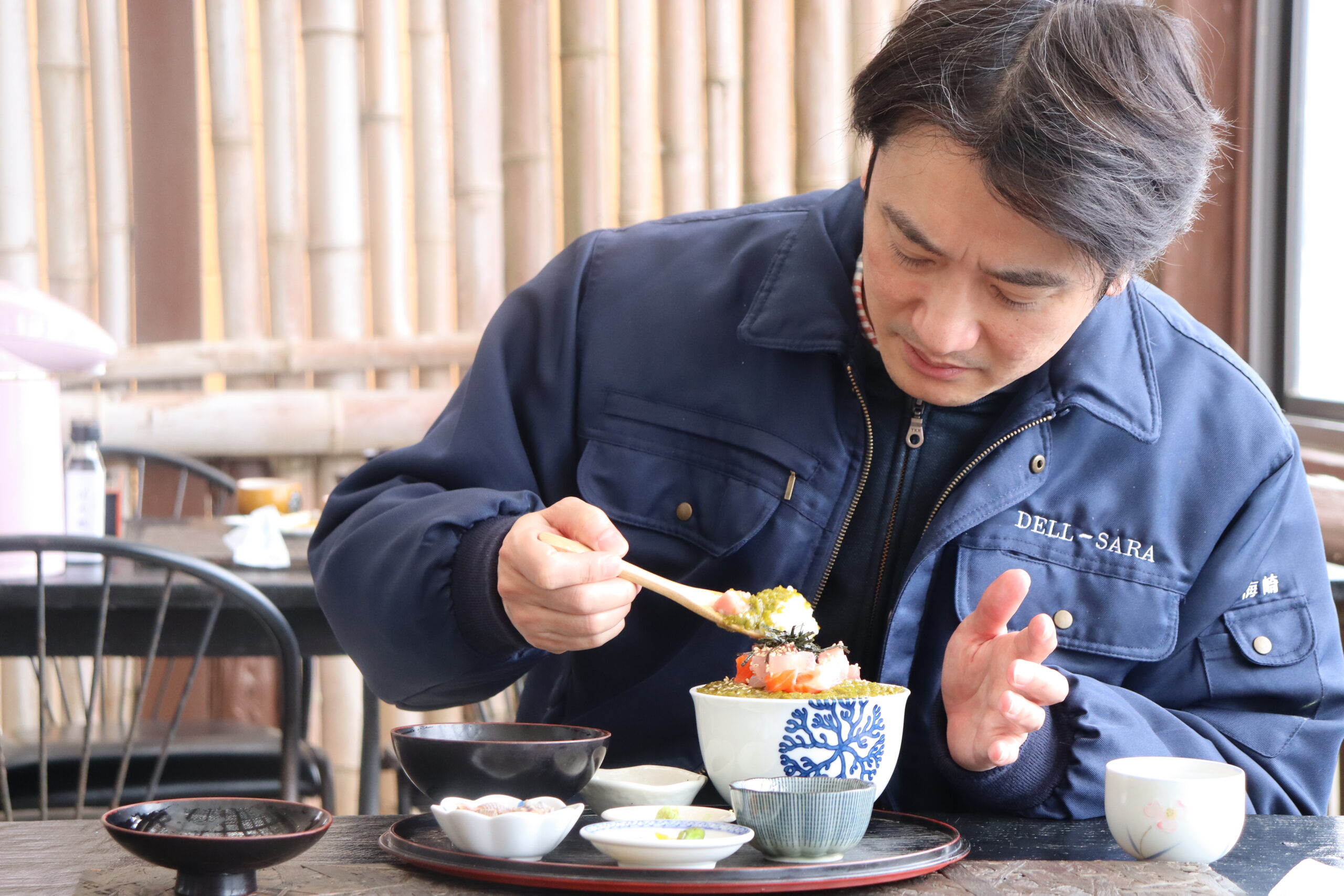 メカブ丼に苦労するUMEZAKI君をよそ眼に、うに丼人はさっさと完食!